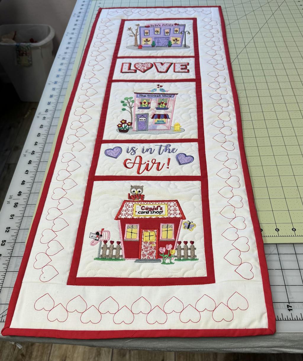 • A heart warming banner design that includes "in the hoop."